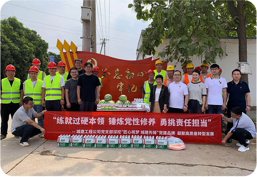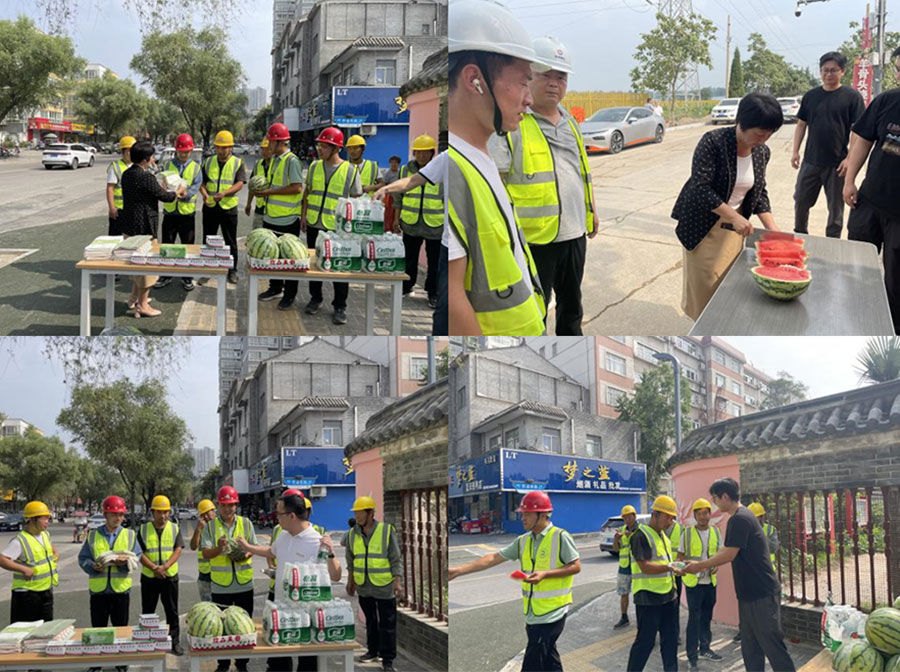 七月的天气,骄阳似火。露天施工作业的一线工人体能消耗极大,为切实做好一线工人的防暑降温工作,关爱在高温作业下的一线施工人员,7月11日上午,洛阳城乡建设工程有限公司董事长王会娟携班子成员及河南宏创建设工程有限公司负责人,深入宏创公司项目一线亲手把西瓜、矿泉水、藿香正气液等防暑降温用品送到工人手中,把关怀送入工人的心坎。